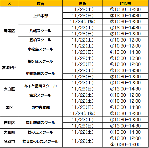 11月22日(土)・23日(日)・24日(月祝)実施