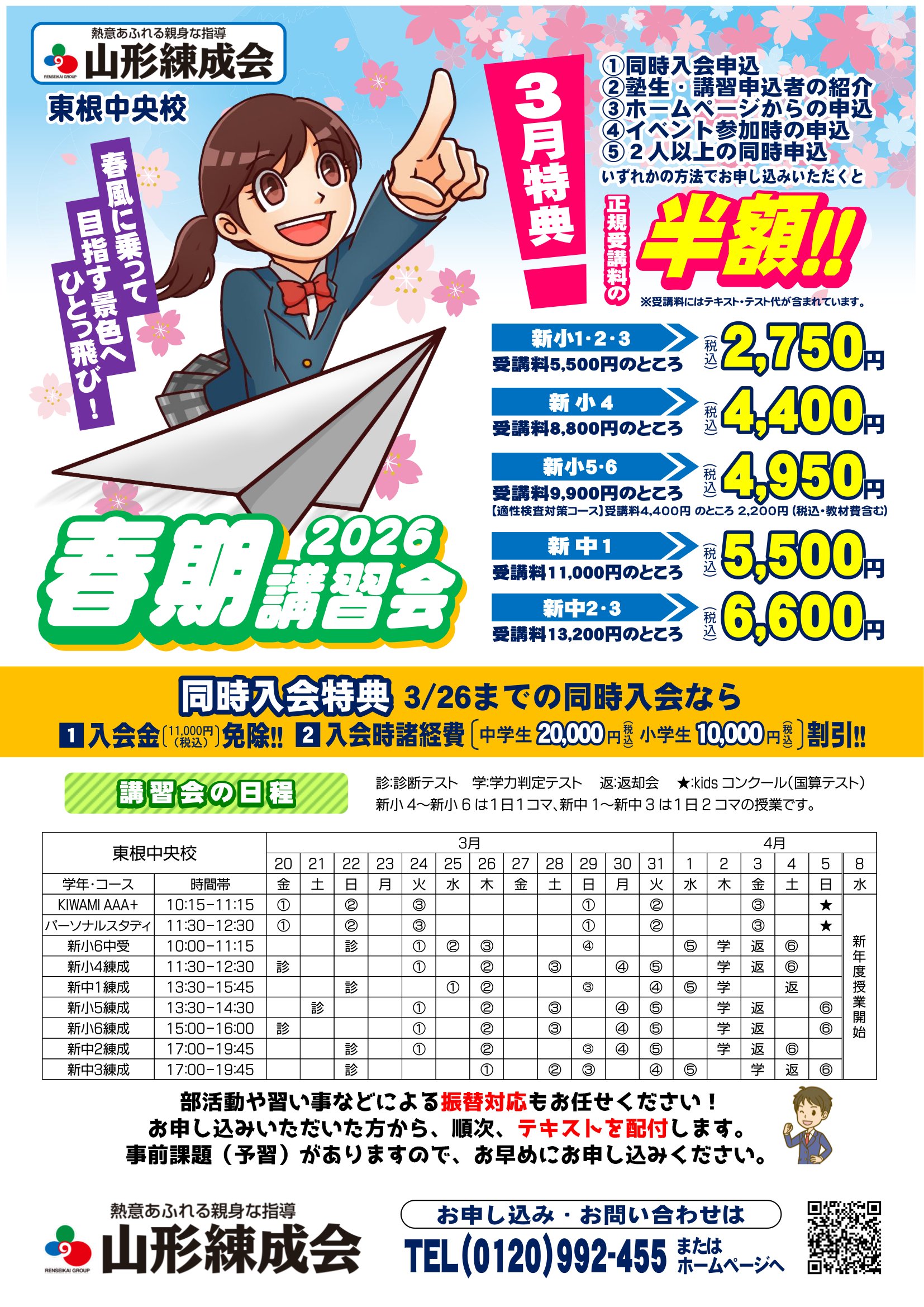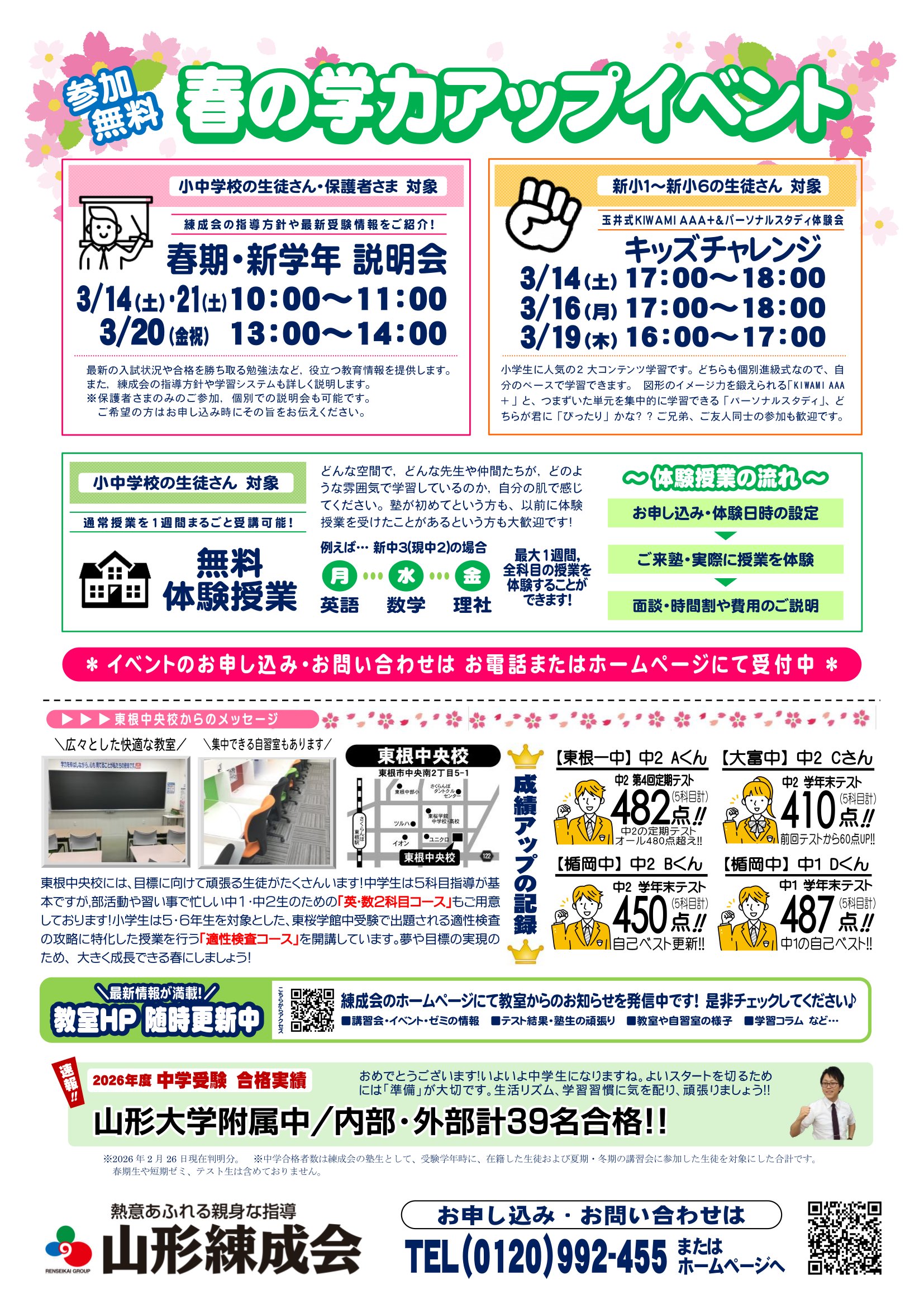 塾選びは未来選び!春期講習会・3月イベント受付中!!(東根中央校)