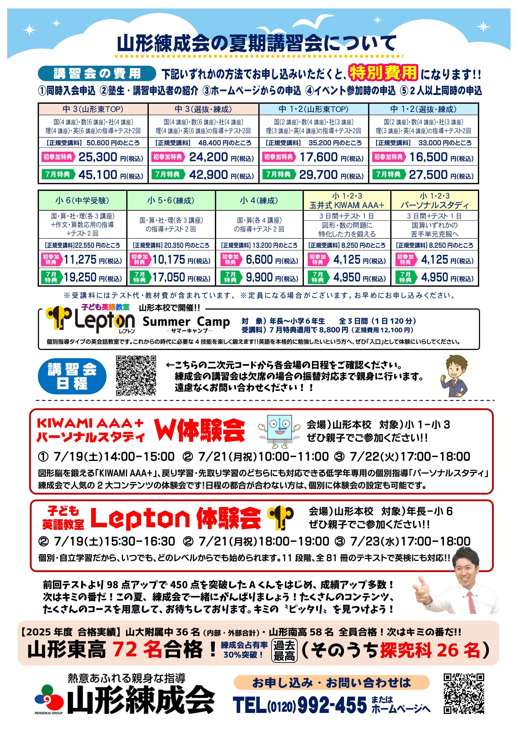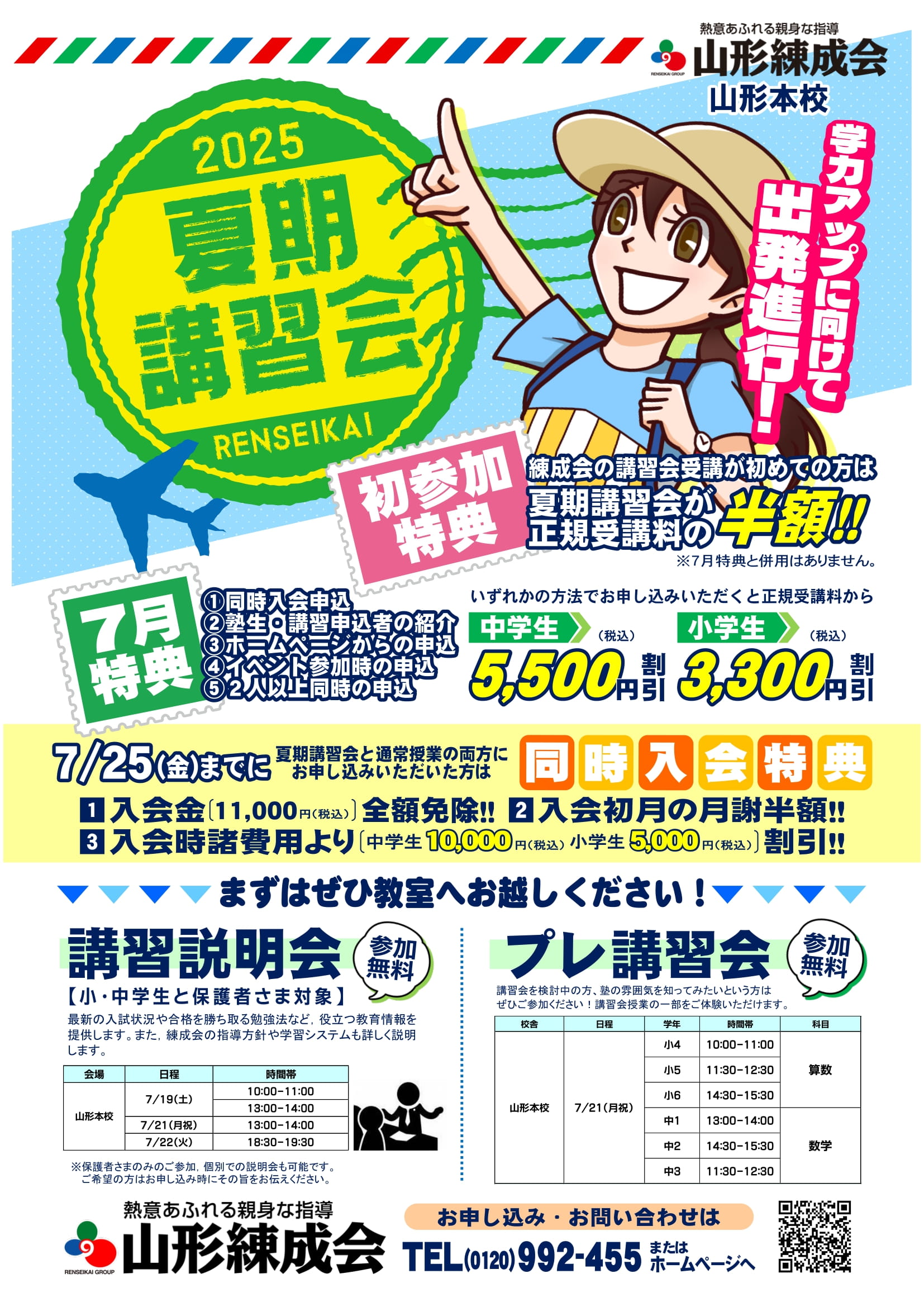 夏期講習会・7月無料イベント受付中!!(山形本校)