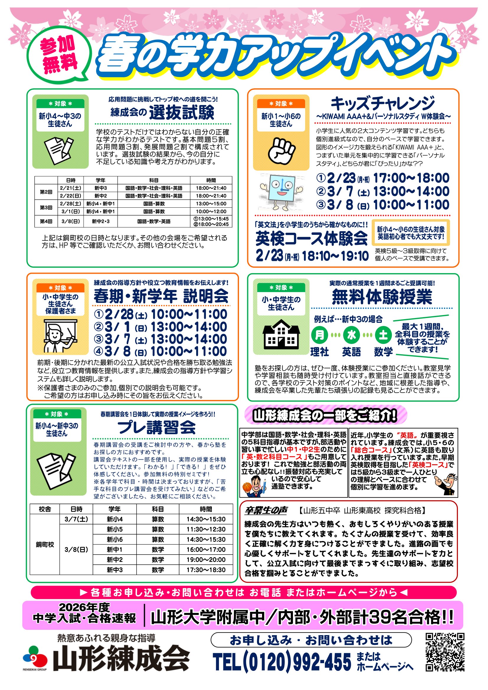 春期講習会の日程確定!2月・3月イベントも受付中!!(銅町校)