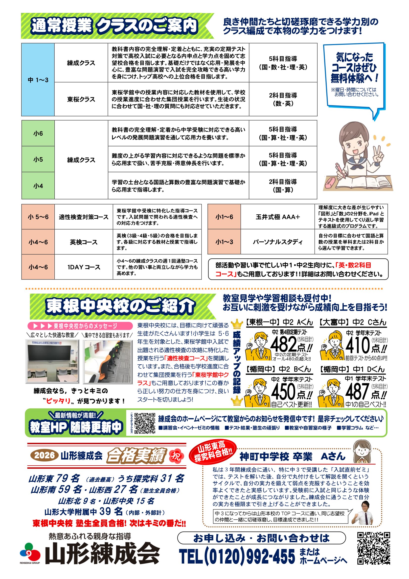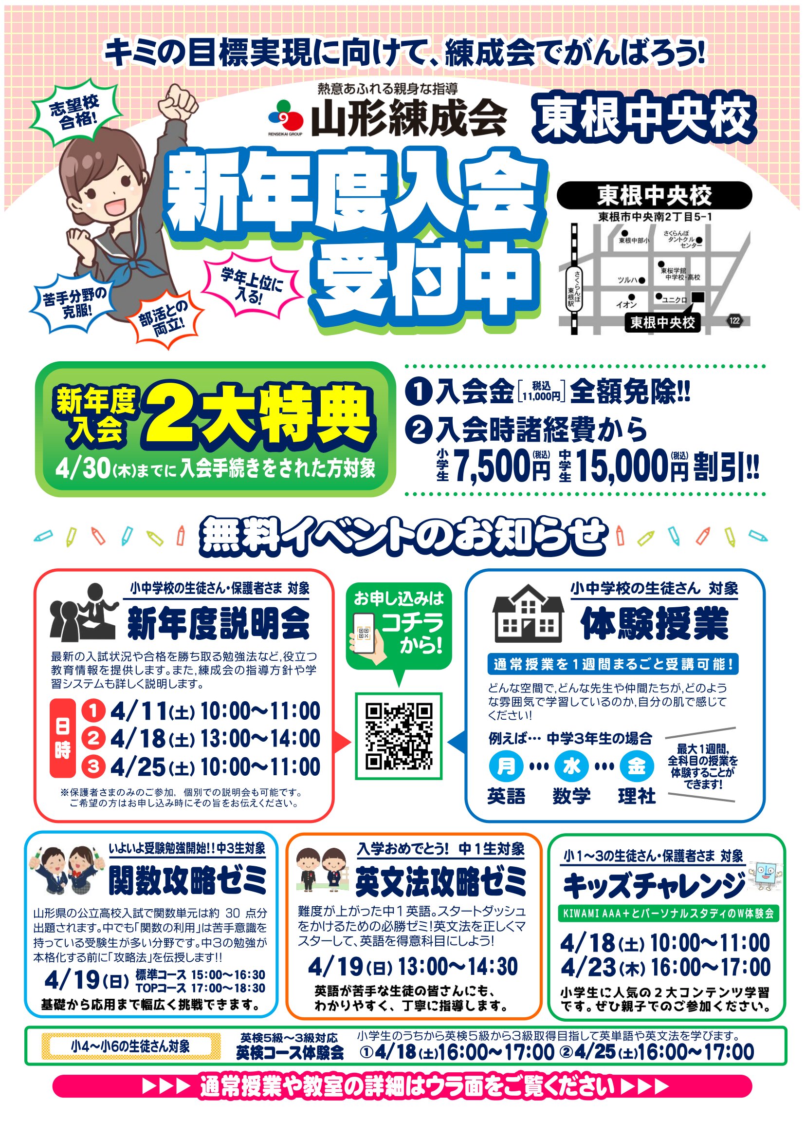 飛躍の一年へ!新年度入会・4月無料イベントのご案内(東根中央校)