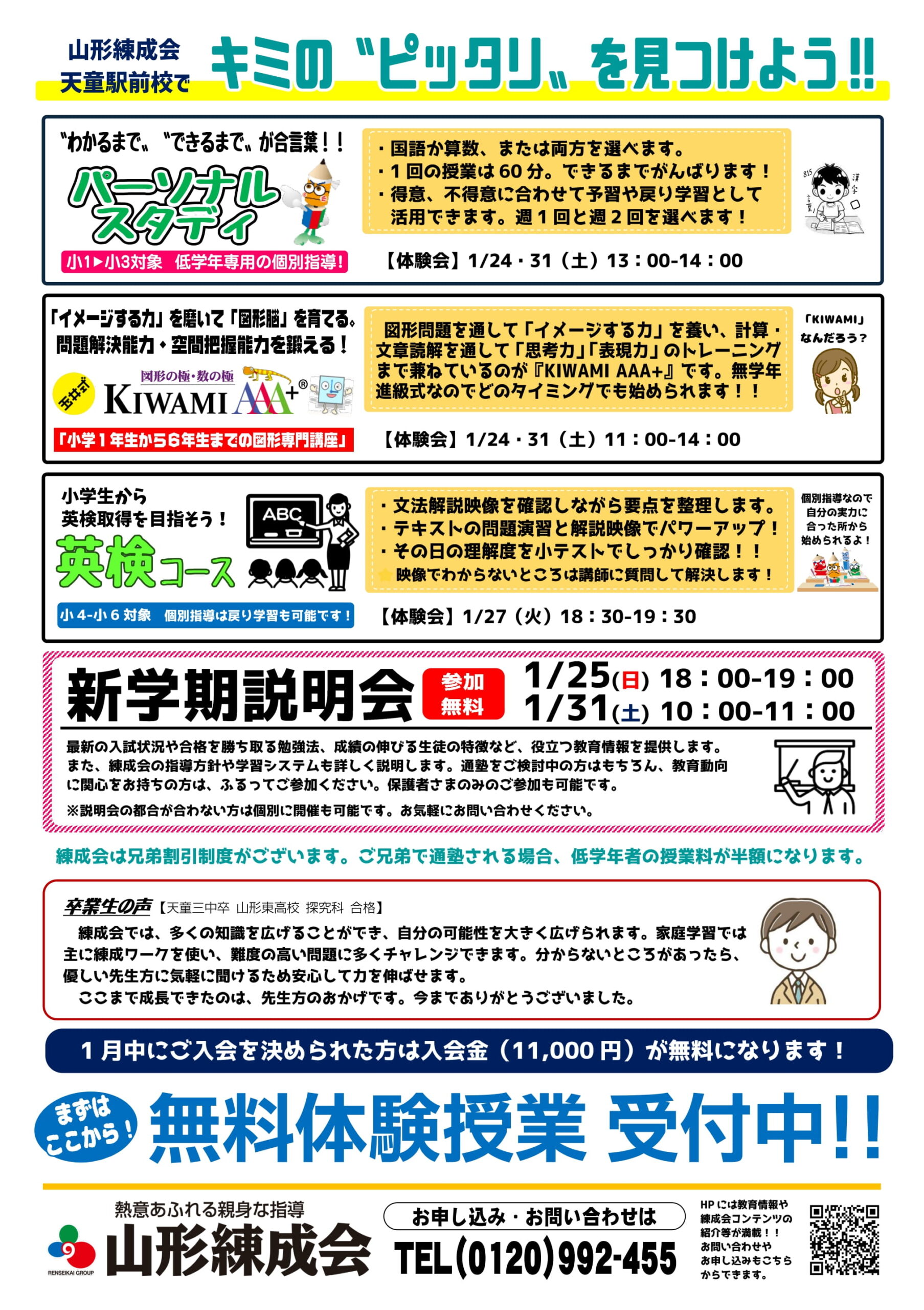 冬期講習会・12月イベントのお知らせ(天童駅前校)